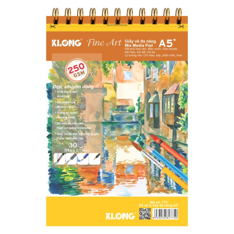 ✨Sổ vẽ KLONG lò xo kép đa năng Fine Art A5 - 250 GSM - 30 tờ; MS: 775
