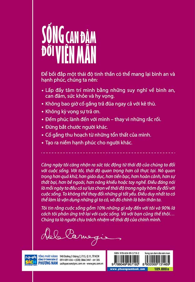 Tôi tin rằng cuộc sống gồm 10% những gì xảy đến với tôi và 90% là cách tôi phản ứng trở lại với cuộc sống. Và với bạn cũng thế thôi… Chúng ta là người chịu trách nhiệm về thái độ của chính mình." (Dale Carnegie)