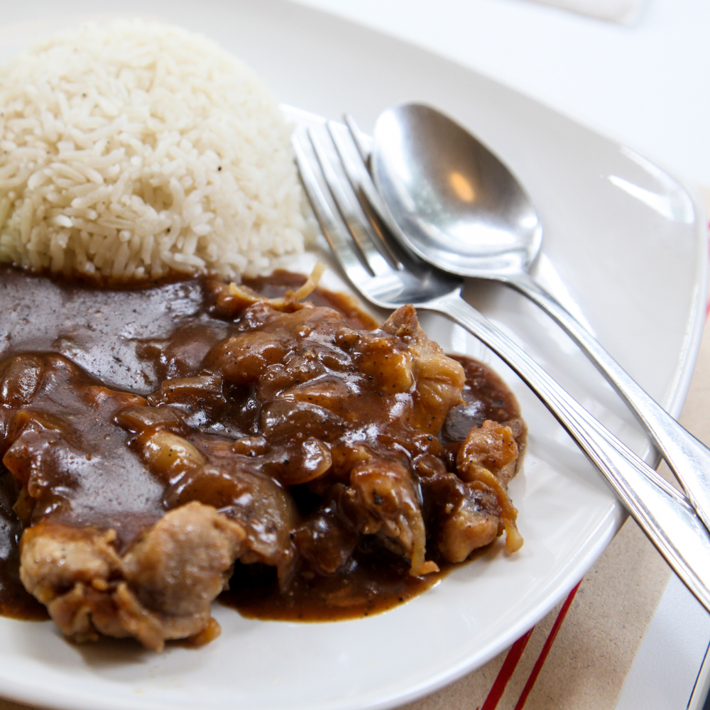 Sốt steak làm từ nước tương với vị ngọt của hành tây và vị thơm của hạt tiêu đen xay thô giúp món ăn thêm phần hấp dẫn.