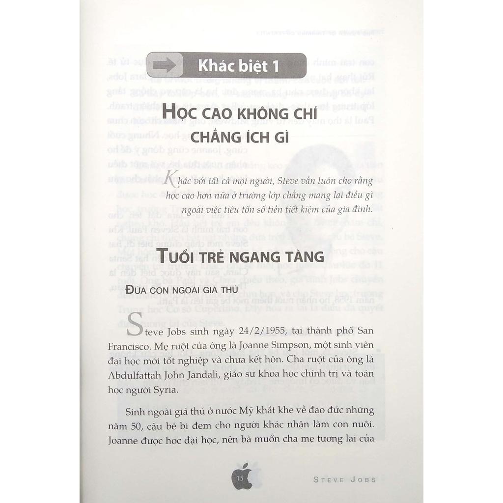 Những khác biệt của Steave Jobs: Học cao không chí chẳng ích gì “Muốn thành công phải dám thất bại chín lần” Máy tính sau này chẳng cao siêu gì hơn chiếc xe đạp Thà làm hải tặc còn hơn gia nhập hải quân Chỉ tuyển những người “đỉnh của đỉnh” Không có chi tiết nào dù nhỏ nhất là tầm thường Thành công đến từ những đểm tình cờ Độc đoán và đam mê tạo ra sự tuyệt hảo Kinh doanh không phải là chiều theo ý khách hàng Không chỉ đi trước, phải vượt xa thiên hạ Cái chết là động lực sáng tạo Không bao giờ dừng lại Không hài lòng cả những gì hòan hảo.