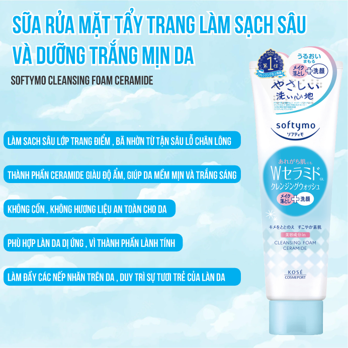 Sữa Rửa Mặt Tẩy Trang Chiết Xuất Collgen Kosé Softymo Cleansing Foam (190g)