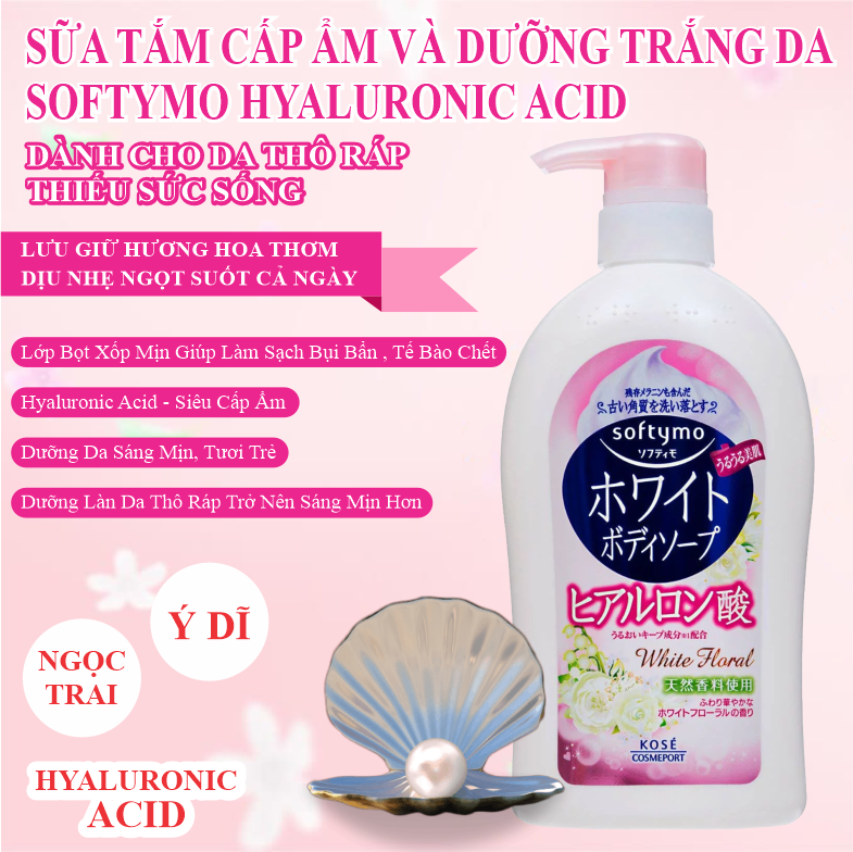 Sữa Tắm Dưỡng Trắng Mịn Da Softymo Hyaluronic acid Body Soap 600mL