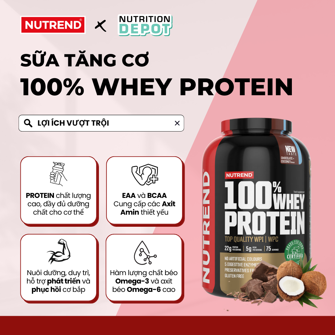 ✨Sữa tăng cơ cho người tập gym (5lbs - 75 servings) – Nutrend 100% Whey Protein (Whey Protein Blend) - Nutrition Depot Vietnam