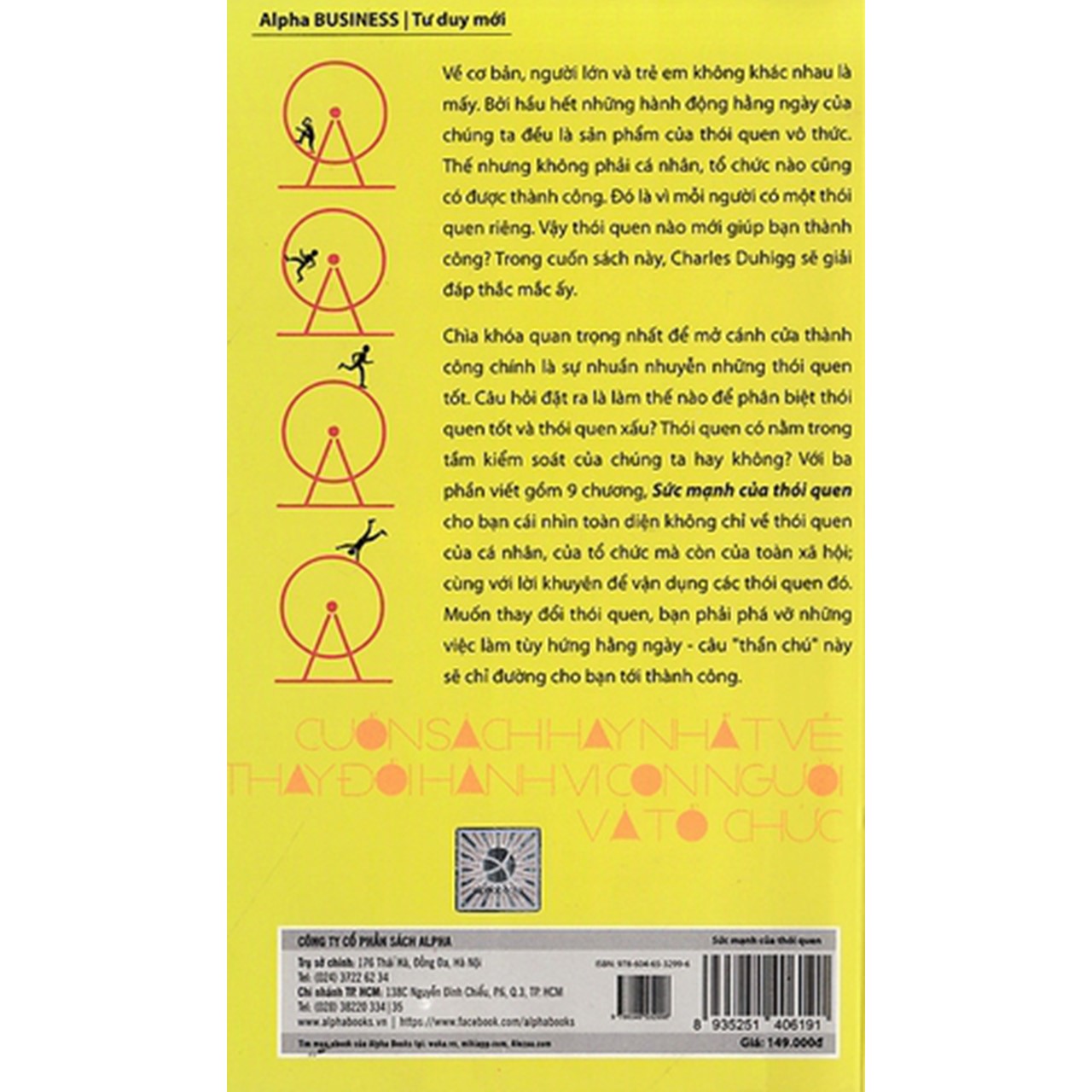 Sức Mạnh Của Thói Quen Chìa khoá quan trọng nhất để mở cánh cửa thành công chính là sự kết hợp nhuần nhuyễn những thói quen tốt với nhau. Câu hỏi đặt ra là làm thế nào để phân biệt thói quen tốt và thói quen xấu? Thói quen có nằm trong tầm kiểm soát của chúng ta hay không? Với ba phần khá đầy đặn, Sức mạnh của thói quen cho bạn cái nhìn toàn diện không chỉ về thói quen cá nhân, của tổ chức mà còn là của toàn xã hội, cùng với lời khuyên để vận dụng các thói quen đó. Muốn thay đổi thói quen, bạn phải phá vỡ những việc làm tuỳ hứng hàng ngày – câu “thần chú” này chỉ đường cho bạn tới thành công. Sức mạnh của thói quen sẽ làm bạn say mê bởi những ý tưởng thú vị, những nghiên cứu ấn tượng, những phân tích thông minh và những lời khuyên thiết thực.Và những độc giả đã đưa cuốn sách này vào danh sách bestseller của Thời báo New York suốt 40 tuần đã kiểm chứng điều đó.