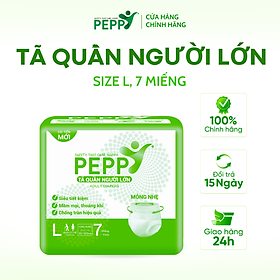 Combo 6 gói Tã/Bỉm Quần Người Lớn, Người Già Peppy Siêu Mỏng, Siêu Thấm, Mềm Mại, Kháng Khuẩn Size M8/L7/XL9 I. THÔNG TIN SẢN PHẨM Thương hiệu: Xuất xứ:Việt Nam Sản xuất tại: Công ty TNHH Javi - Lô LE6-02 Đường số 2, KCN Xuyên Á, Mỹ Hạnh Bắc, Đức Hòa, Long An Thành phần: Vải không dệt, lớp thấm hút thông minh, hạt siêu thấm, bông giấy, vải thoáng khí, thun, keo,… Quy cách đóng gói: Size M 8 miếng/gói, size L 7 miếng/gói, size XL 7 miếng Phân loại: Tã quần người lớn - Siêu mỏng II. ĐỐI TƯỢNG SỬ DỤNG: • Những người bị chứng són tiểu mà vẫn có thể tham gia các hoạt động bên ngoài như đi làm, đi học, đi chơi. • Phụ nữ khi mang bầu có tần suất đi vệ sinh cao,