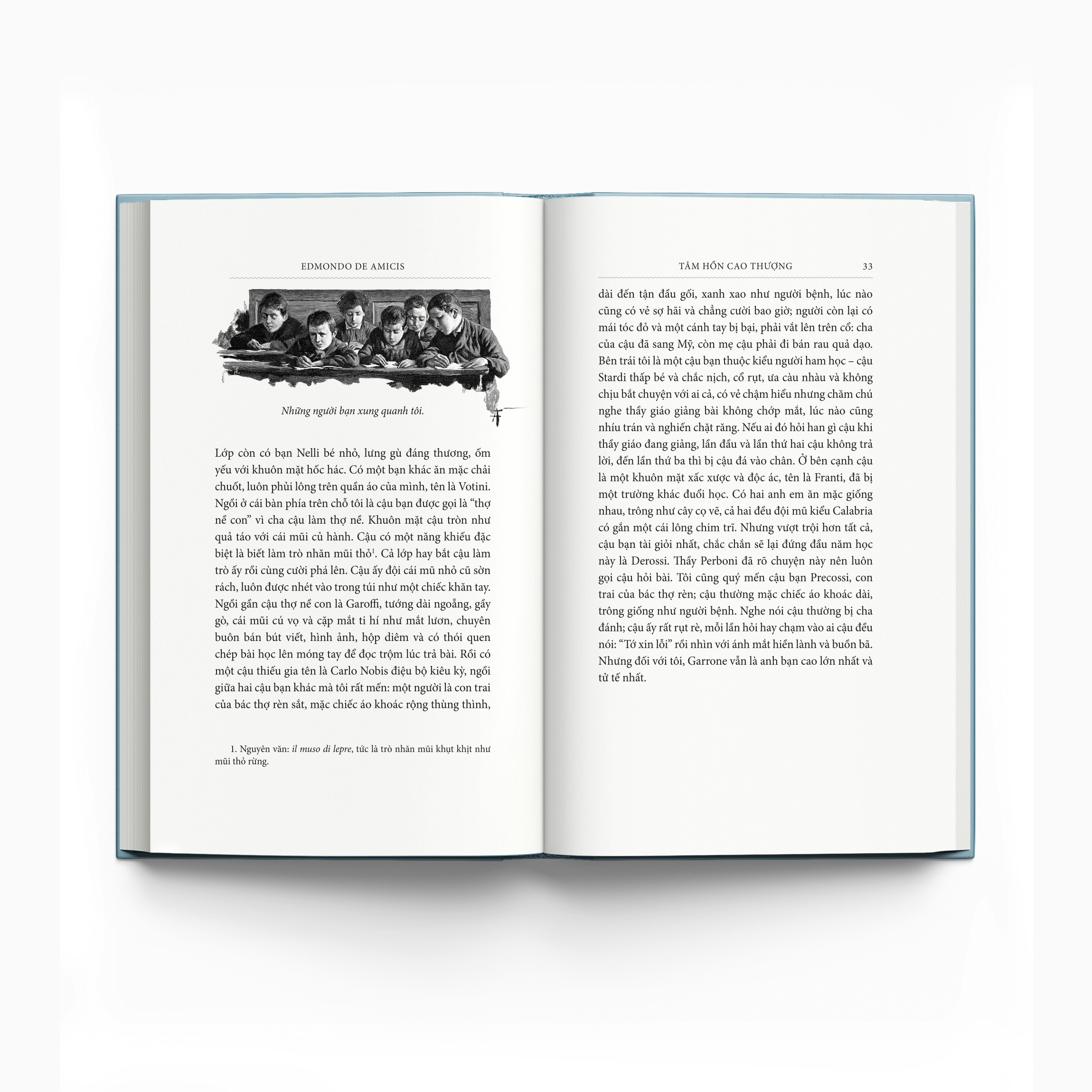 Tâm hồn cao thượng (Cuore) xuất bản ngày 17 tháng 10 năm 1886 - ngày tựu trường ở Ý là tác phẩm nổi tiếng nhất của De Amicis, khiến nhà văn vốn không chuyên viết về thiếu nhi trở nên nổi tiếng trong thể loại này. Một phần cuốn sách này là sự phản ảnh tuổi nhỏ của hai con trai ông.