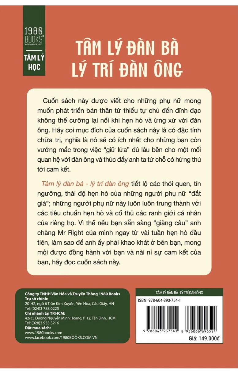 Tâm lý đàn bà – lý trí đàn ông là một cuốn sách về chủ đề hẹn hò sẽ tiết lộ các thói quen, tín ngưỡng, thái độ hẹn hò của những người phụ nữ “đắt giá”; những người phụ nữ này luôn luôn trung thành với các tiêu chuẩn hẹn hò và cố thủ các ranh giới cá nhân của riêng họ, bất chấp người đàn ông mà cô ấy đang hẹn hò đáng mơ ước, đáng khao khát, thân thế bất phàm ra sao. Vì thế nếu bạn sẵn sàng “giăng câu” anh chàng Mr Right (Người đàn ông chân chính) của mình ngay từ vài tuần hẹn hò đầu tiên, làm sao để anh ấy phải khao khát ở bên bạn, mong mỏi được đồng hành với bạn và nài nỉ sự cam kết của bạn, hãy đọc cuốn sách này.