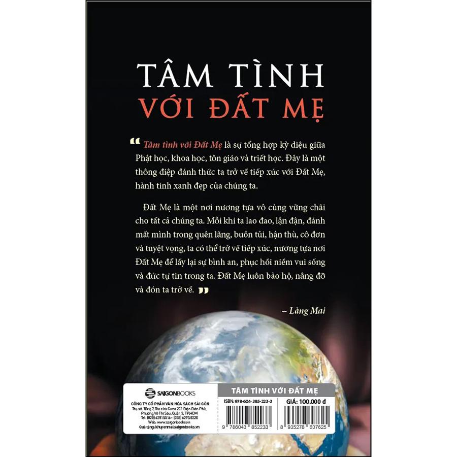 Tâm tình với Đất Mẹ là sự tổng hợp kỳ diệu giữa Phật học, khoa học, tôn giáo và triết học. Đây là một thông điệp đánh thức ta trở về tiếp xúc với Đất Mẹ, hành tinh xanh đẹp của chúng ta. Đất Mẹ là một nơi nương tựa vô cùng vững chãi cho tất cả chúng ta. Mỗi khi ta lao đao, lận đận, đánh mất mình trong quên lãng, buồn tủi, hận thù, cô đơn và tuyệt vọng, ta có thể trở về tiếp xúc, nương tựa nơi Đất Mẹ để lấy lại sự bình an, phục hồi niềm vui sống và đức tự tin trong ta. Đất Mẹ luôn bảo hộ, nâng đỡ và đón ta trở về.