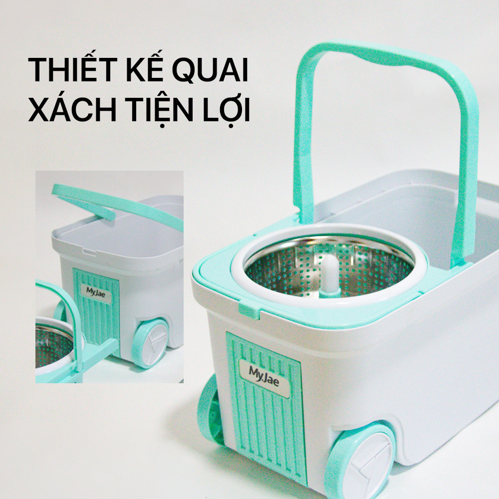 Cây lau MyJae 3 lần vắt 3 thanh gạt, phân ra ngăn khô và ngăn giặt 2 van xả nước, vệ sinh dễ dàng Thùng nhỏ gọn, cất giữ dễ dàng Cây lau MyJae 3