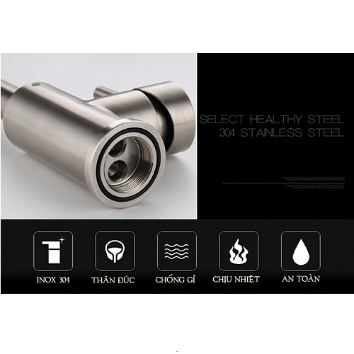 Chất liệu: Inox 304 Thiết kế 2 đường nước nóng – lạnh Thân vòi có thể xoay 360 độ Đầu vòi tạo bọt, hạn chế bắn nước khi sử dụng Bảo hành 5 năm chính