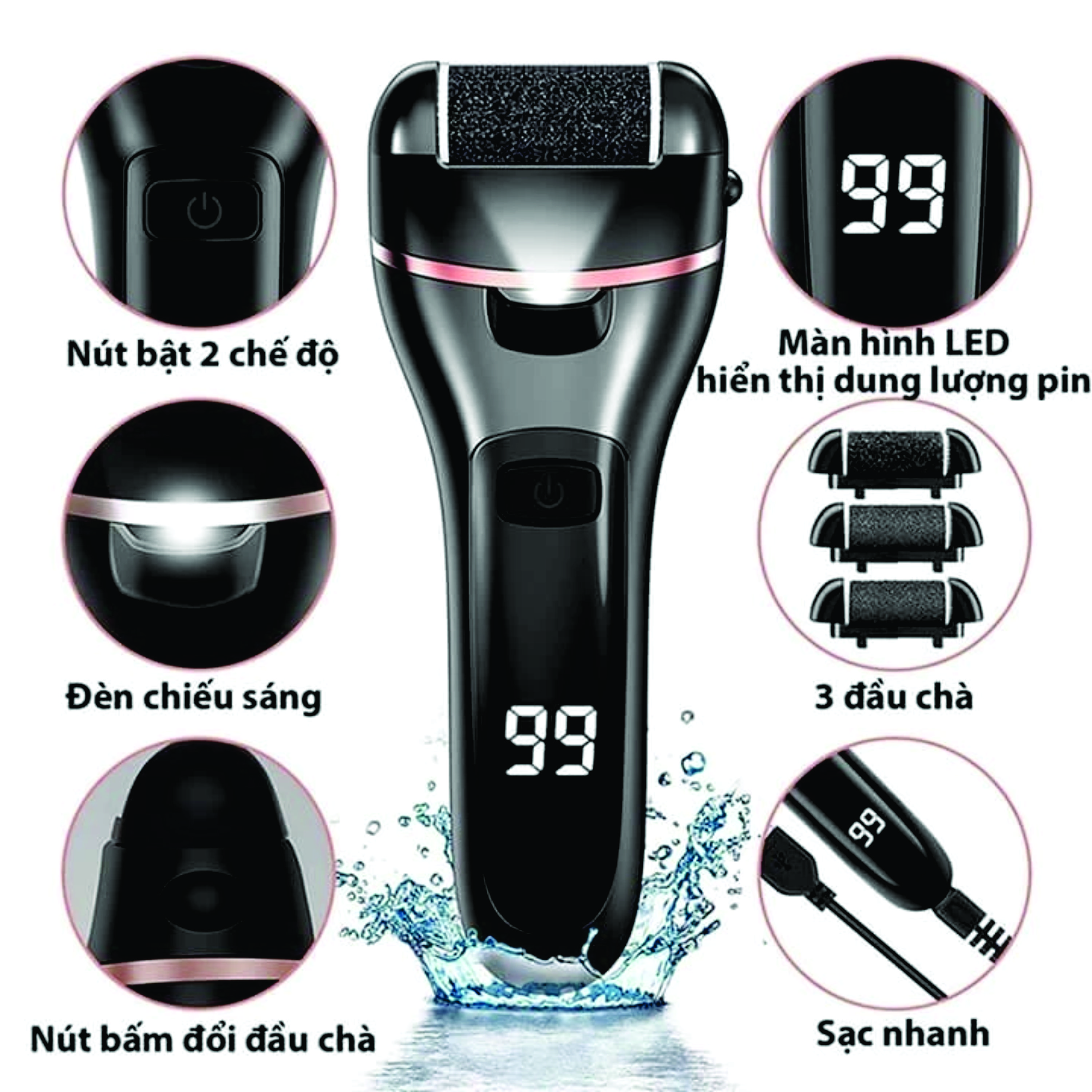 Máy chà gót chân tẩy tế bào chết 3 đầu mài 2 chế độ cao cấp, máy mài gót chân đa năng tặng kèm bộ phụ kiện 10 món Máy chà gót chân, dụng cụ chà gót chân cao cấp 3 đầu mài tiện dụng tẩy tế bào chết, da cứng dưới chân Máy mài tế bào chết gót chân, máy chà gót chân, pin có thể sạc lại,loại bỏ da cứng,dụng cụ chăm sóc móng chân cho bàn chân mẫu mới có đèn Led chiếu sáng.