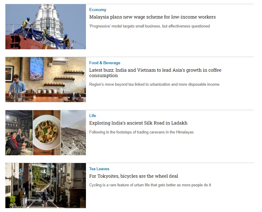 • Là thương hiệu truyền thông lớn và được kiểm duyệt nội dung hằng tuần với dạng thông tin chính thống, được thu thập từ các phóng viên uy tín trên toàn Châu Á, là nguồn trích xuất cho nhiều nhà báo tại Việt Nam.