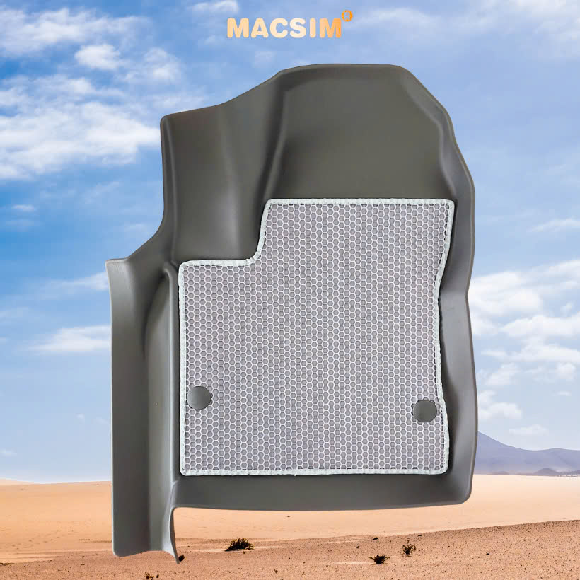 Lớp 1: Của Thảm lót sàn ô tô có hình dạng khay (được gọi là thảm nhựa đúc khuôn) được thiết kế chuẩn khít theo từng mẫu sàn xe. Thảm lớp 1 dẻo dai, dàydặn, không để lại vết hằn và vết thủng ngay cả khi quý khách sử dụng giày cao gót. Thảm thân thiện với môi trường, an toàn, hữu ích cho sức khỏe người sử dụng. Thảm lưu giữ đất, cát, nước trong khay nhựa, ngăn nước thấm xuống sàn xe gây mùi hôi và ẩm mốc, dễ dàng tháo lắp vệ sinh nhanh chóng. Lớp 2: Thảm tổ ong giấu bụi bằng cao su PBR (Polybutadiene Rubber): Chất liệu cao su PBR dẻo dai, độ đàn hồi cao, chống mài mòn cực tốt, không mùi, thân thiện với môi trường và sức khỏe. Thiết kế tổ ong 3D thông minh giúp giấu bụi, giữ lại rác và đất cát mà không bị lộ ra ngoài. Khả năng bám sàn tốt, giúp thảm không bị xô lệch khi sử dụng. Có thể tháo rời dễ dàng để vệ sinh riêng, giữ cho lớp dưới luôn sạch sẽ.