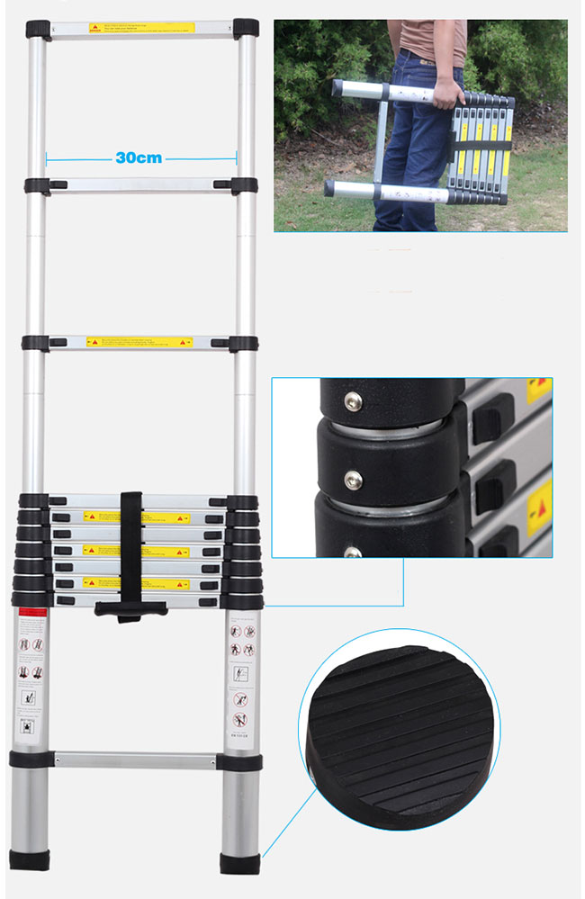 Thang nhôm rút gọn, an toàn, tiện dụng, đa năng - Nhôm 6063 không rỉ - Hàng chính hãng NIKITA Chất liệu : Nhôm + Plastic Màu sắc : Ống trắng + Đai nhựa