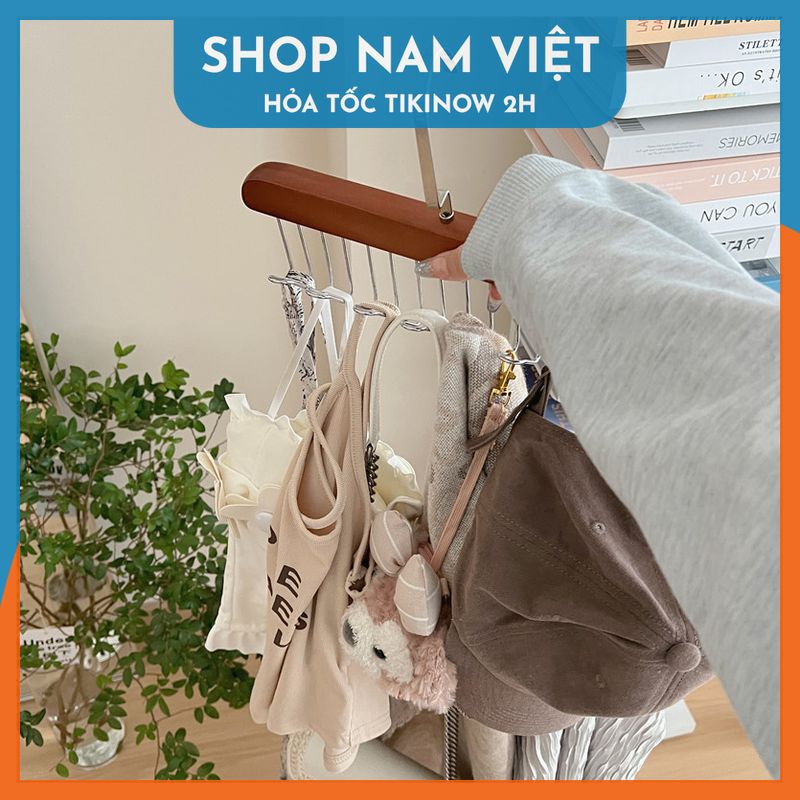 Móc Gỗ Treo Đồ Lót, Thắt Lưng, Cà Vạt- Móc Treo Áo 2 Dây, Mũ, Khăn Đa Năng - Chất liệu: kim loại + móc treo cà vạt gỗ - Kích thước 8 móc: 28