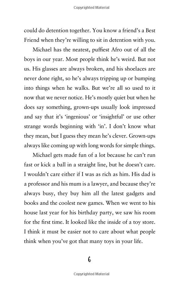 He's nine years old (just like me), but he's very strange. He never talks and never smiles and doesn't like sweets - not even lemon sherbets, which are my favourite!