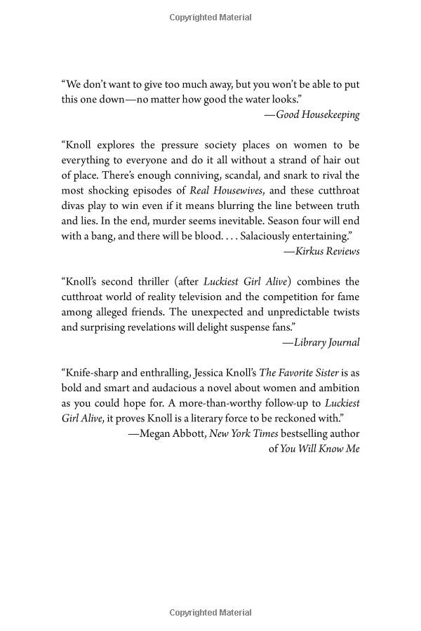 From the author of the bestselling Luckiest Girl Alive comes Jessica Knoll’s thriller, The Favourite Sister, which follows a pair of competitive and uber-successful sisters whose secrets and lies result in murder. Perfect for fans of Liane Moriarty's Nine Perfect Strangers and Caroline Kepnes' You.
