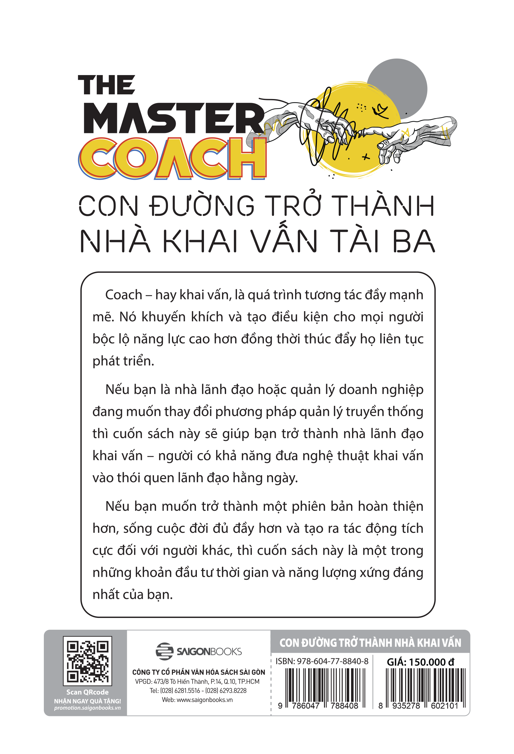The Master Coach - Con đường trở thành nhà khai vấn tài ba không chỉ mở rộng tư duy của bạn trong vai trò một nhà lãnh đạo mà còn có thể chuyển hóa cách bạn suy nghĩ và tương tác với mọi người xung quanh. Nó có sức mạnh giúp bạn xây dựng nền văn hóa doanh nghiệp trong đó toàn bộ đội ngũ lãnh đạo đều có năng lực dẫn dắt, tư vấn, đào tạo và khai vấn cho người khác một cách sâu sắc.