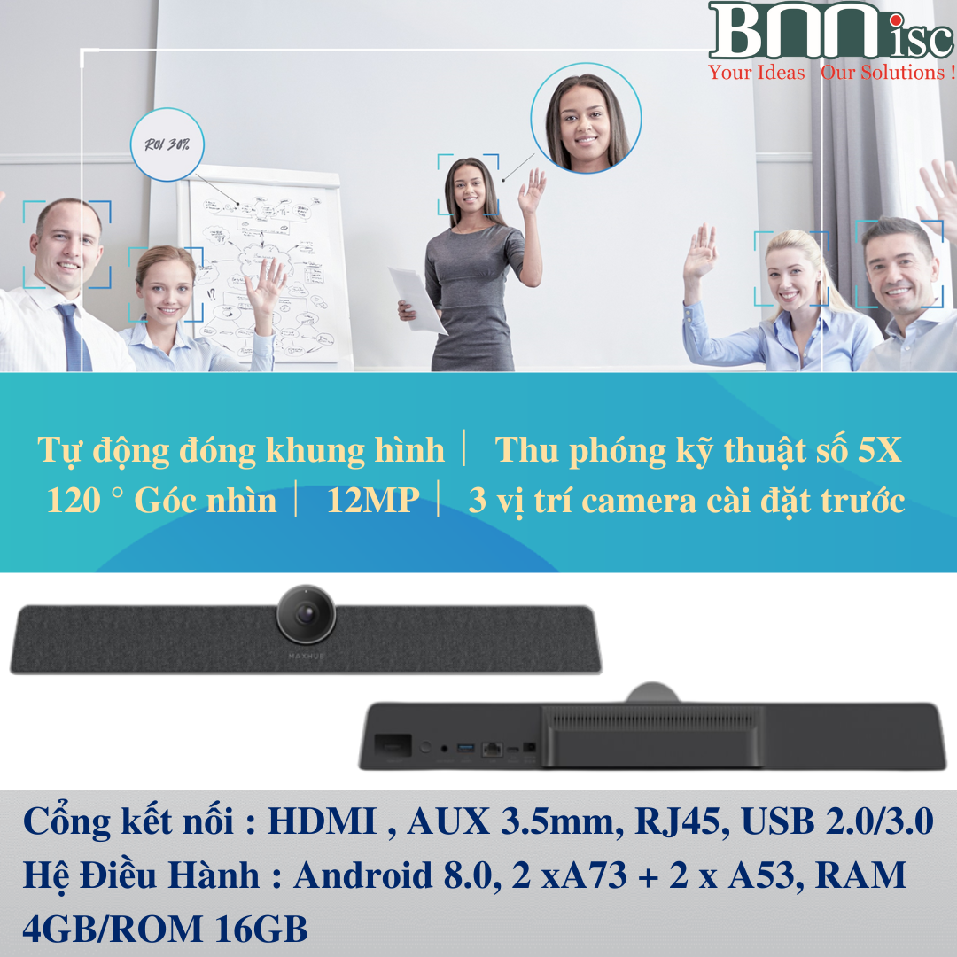 Hệ thống Hội Nghị Truyền Hình chuyên nghiệp MaxHub, tích hợp Chia Sẻ Không Dây cho họp Onlie và Offline. Camera :