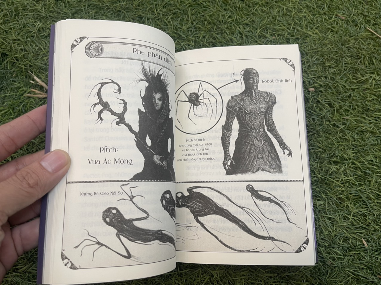 Các bạn hãy click vào các ảnh để xem vài bức chụp vội mấy trang sách. Tranh minh họa đen trắng thôi mà đẹp mê lòng quá!