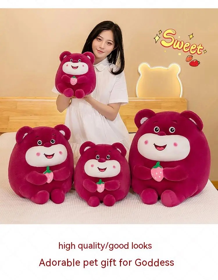 ✨Thú nhồi bông lotso tròn ôm dâu đáng yêu - Size 20cm - Quà tặng gấu dâu tròn vo mềm mịn cute - Gối ôm cho bé.