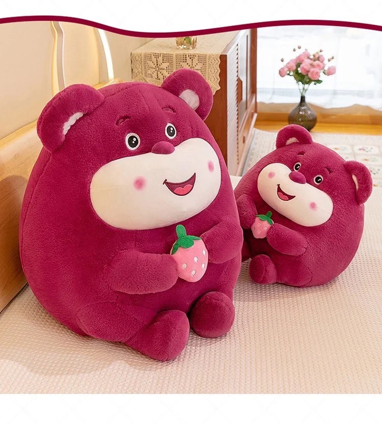 Gấu Dâu Lotso Huggin Bear Nằm Lông Xù Tai Dâu cực Cute, Thú nhồi Bông Hoạt Hình Lotso Đáng yêu | Cộn