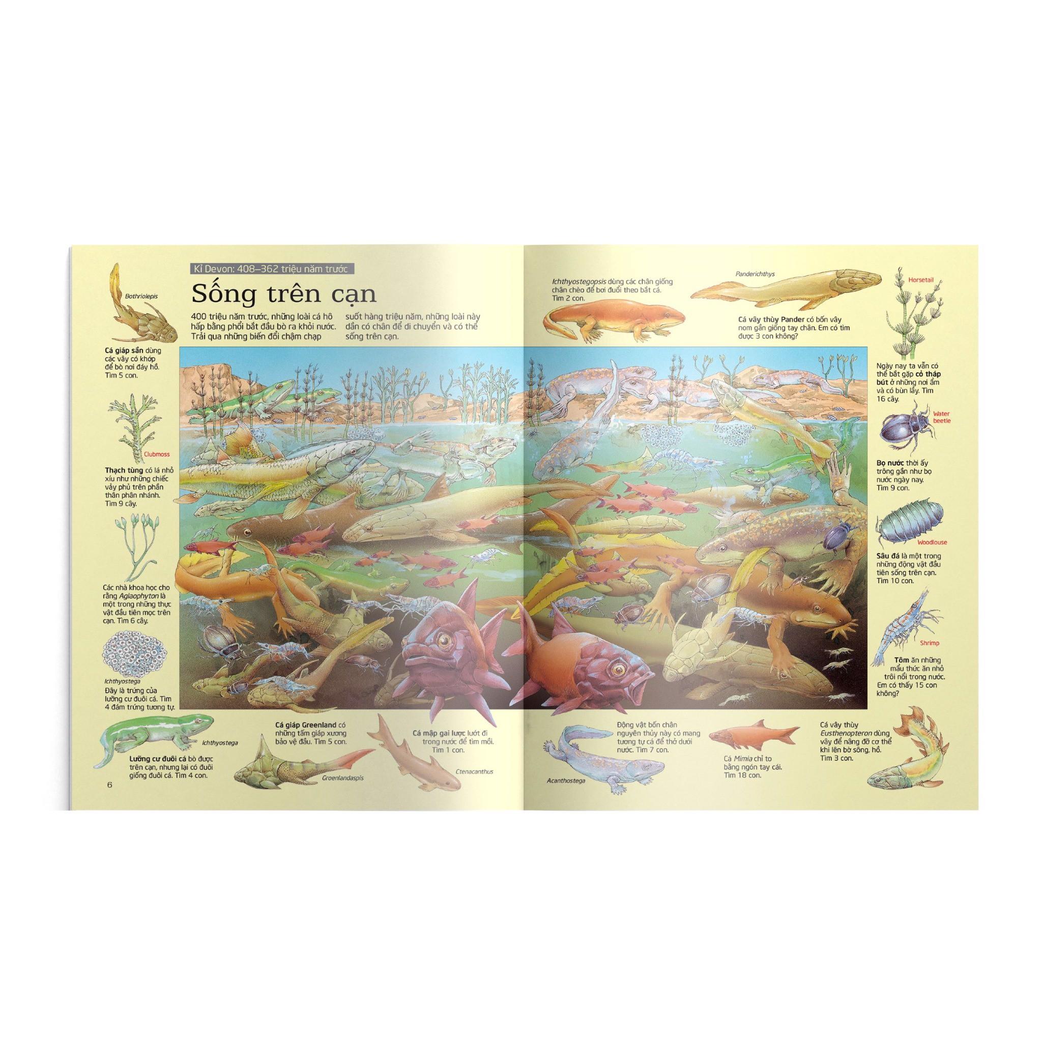 Thử Tài Tìm Kiếm - Khủng Long Từ Uyển long to lớn ăn thực vật đến những đàn Linh đạo long ăn thịt nguy hiểm, trong những trăng cảu cuốn sách tranh tuyệt đẹp này là vô số sinh vật cho em tìm kiếm. Ngoài những thách đố thú vị, Thử tài tìm kiếm – Khủng long còn cung cấp cho em nhiều thông tin hấp dẫn về các sinh vật đáng kinh ngạc từng sống trên Trái Đất nhiều triệu năm về trước.