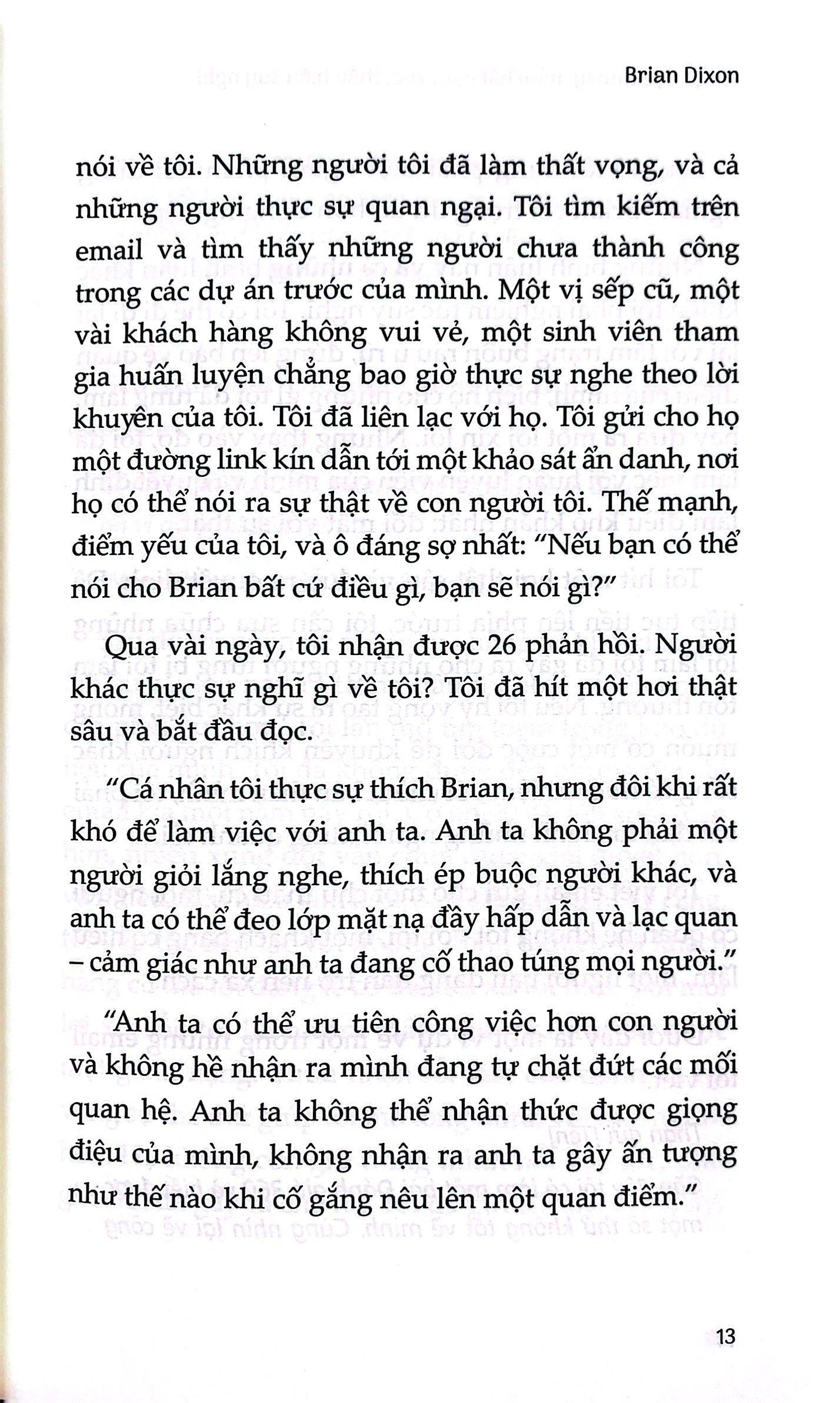 Sau khi thất bại trong nhiều mối quan hệ và dự án, Brian Dixon quyết tâm khám phá bí quyết để hạnh phúc trong công việc mà sống một cuộc đời có ý nghĩa. Trong Khéo léo đối nhân, được lòng thiên hạ, Brian trao cho bạn chiếc chìa khoá quan trọng nhất để hạnh phúc trong các mối quan hệ của bạn và mở cánh cửa đến mục tiêu, đam mê, và lợi nhuận. Sự thật là, bạn không tự mình đạt được ước mơ. Bạn cần những người xung quanh. Và họ cũng cần bạn. “Thuật đọc tâm lý, nắm bắt cảm xúc, thấu hiểu suy nghĩ’’ là cuốn sách hướng dẫn đầy đủ để giúp bạn tận dụng nguồn tài nguyên quan trọng nhất để thành công trong kinh doanh và cuộc sống. =>> Hãy cùng tác giả Brian khám phá tư duy đặt con người lên hàng đầu, bao gồm: