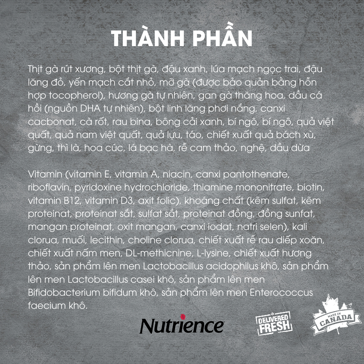 - THÀNH PHẦN NGUYÊN LIỆU: Xuất xứ Canada HSD: 12 tháng từ ngày sản xuất trên bao bì