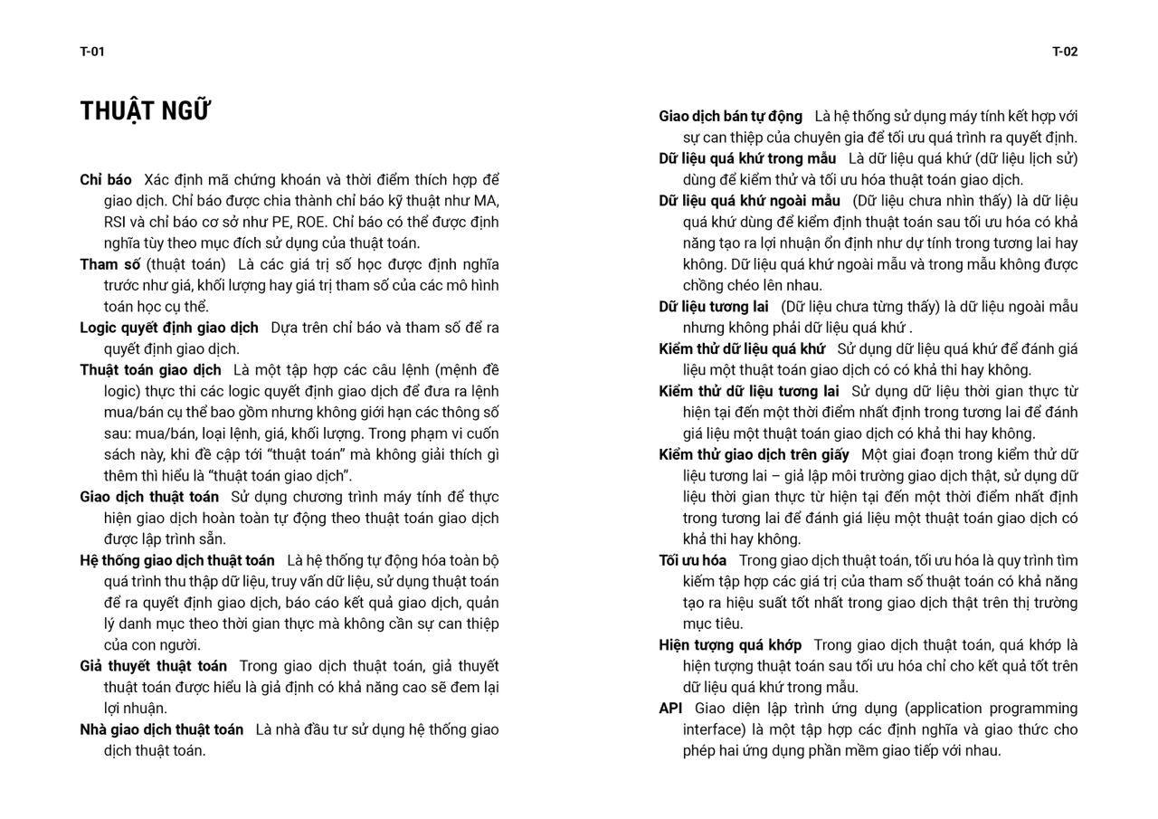 Thực tiễn giao dịch thuật toán tại thị trường chứng khoán Việt Nam là tài liệu được viết riêng cho bạn. Cuốn sách khái quát hóa toàn bộ quy trình xây dựng hệ thống giao dịch thuật toán và lộ trình để biến ý tưởng đầu tư thành chiến lược giao dịch cụ thể, kiểm thử, tối ưu, và tự động hóa toàn bộ quá trình thực thi chiến lược.