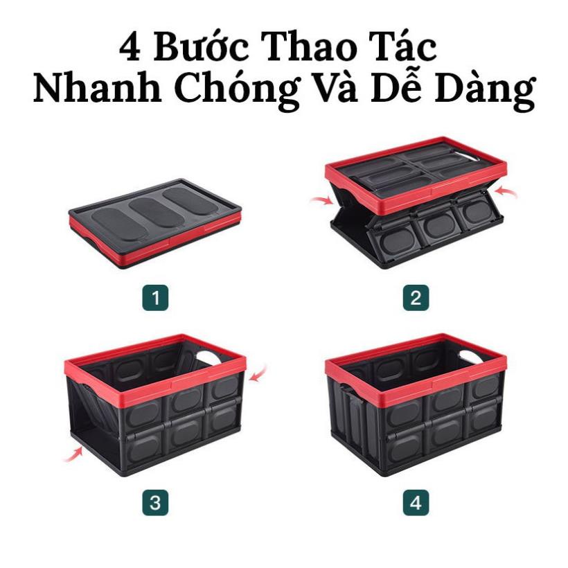 Thùng đựng đồ ô Tô gấp gọn để cốp sau-Thùng nhựa cao cấp để đồ trên xe hơi dung tích 30L và 56L kèm túi lót chống nước THÔNG TIN SẢN PHẨM THÙNG ĐỰNG ĐỒ ĐA NĂNG ️ Màu sắc: Màu đen đỏ. ️ Chất liệu: Nhựa PP nguyên sinh thân thiện với môi trường, tay cầm tròn dễ vận chuyển và sử dụng linh hoạt. ️ Đế thùng dạng lưới, độ ma sát cao, chống mài mòn, có thể chịu nhiệt đến 90*C. ️ Với thiết kế thông minh có thể tháo rời nắp và xếp gọn lại và cất đi khi không cần sử dụng nữa mà không tốn diện tích. ️ Có lớp lót vải PEVA chứa được nước, đi câu về có chỗ để cá không sợ bẩn xe, về quê có thể bắt vài con gà mang lên HN mà không cần phải treo ngoài xe. PHÂN LOẠI THÙNG ĐỰNG ĐỒ SAU CỐP Ô TÔ ️ Trọng lượng: + Loại 30 lít: 1.1 kg + Loại 56 lít: 1.87 kg ️ Kích thước: + Loại 30 lít : 23cm x 43cm x 30 cm khi gấp gọn : 5,2cm x 43cm x 30 cm + Loại 56 lít : 29cm x 53cm x 35 cm khi gấp gọn : 6,2cm x 53cm x 35 cm LỢI ÍCH CỦA THÙNG ĐỰNG ĐỒ GẤP GỌN ️ Giúp bạn cất gọn mọi thứ trên xe gọn gàng chỉ trong một chiếc hộp, tiết kiệm không gian cho xe, không còn phải lo lắng xe ô tô luôn bị bày bừa. ️ Hộp đựng xếp gọn trên ô tô di chuyển dễ dàng và bạn có thể mang đi bất kỳ đâu. ️ Thùng đựng gấp gọn chỉ còn chiều cao 5cm, cất giữ thuận tiện. ️ Thùng đựng đồ để cốp xe hơi thiết kế màu sắc trang nhã, có tay cầm thuận tiện trong việc di chuyển. Các mối nối được cố định bằng đinh thép đảm bảo độ chắc chắn, bền bỉ. ̂́ ̂̀ ̂́ ̛̛̣ ̀ ̣ ̣ ́ ̀ ️ Chất lượng sản phẩm đảm bảo 100% như mô tả. ️ Hỗ trợ đổi trả hàng nếu như do lỗi của nhà sản xuất. ️ Sản phẩm trước khi giao đến khách hàng sẽ được kiểm tra và đóng gói cẩn thận. ️ Luôn sẵn sàng hỗ trợ 24/24 qua về mọi vấn đề liên quan đến chất lượng sản phẩm và dịch vụ.