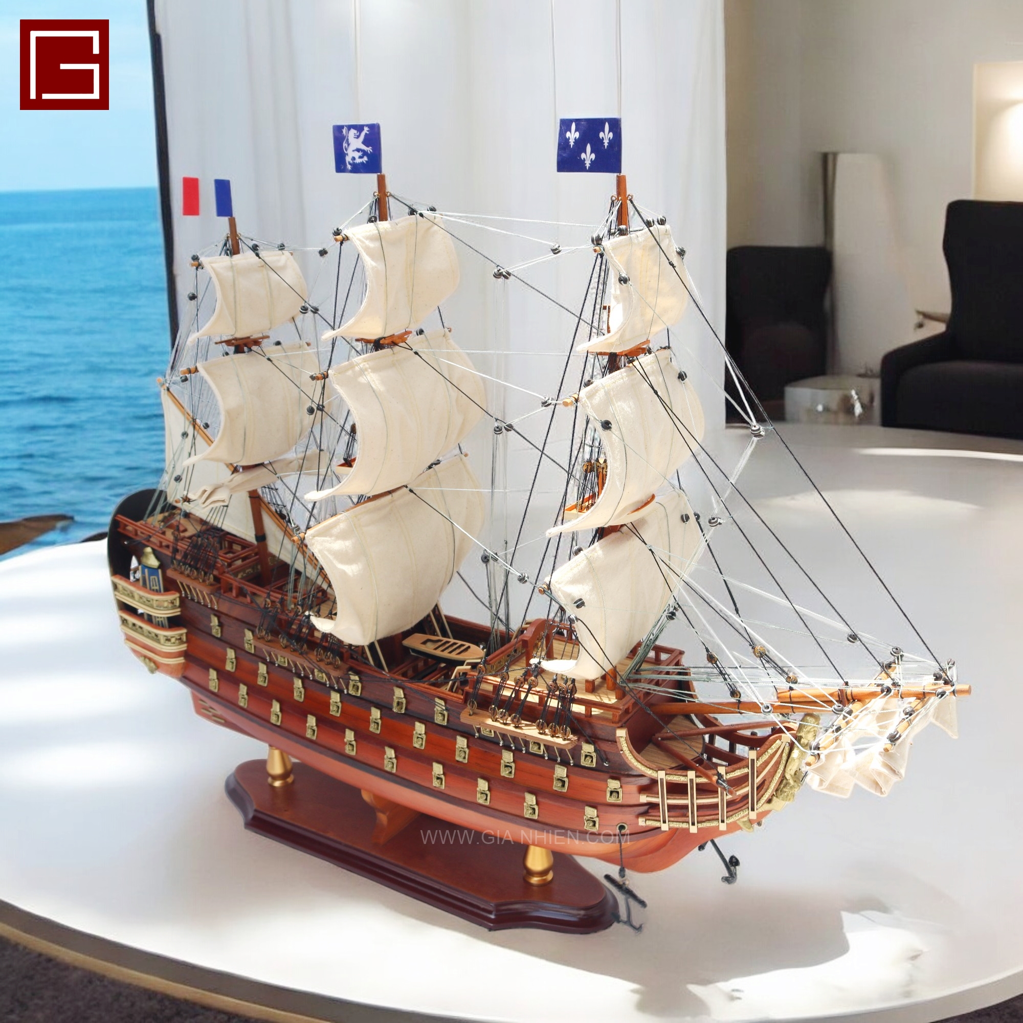 MÔ HÌNH THUYỀN CỔ FRANCE II - TÀU BUỒM CỦA PHÁP - Mô hình thuyền cổ FRANCE II có 4 kích thước 0.07m3, 0.16m3, 0.23m3 và 0.30m3: +0.07m3 có kích thước là: Chiều dài: 70cm