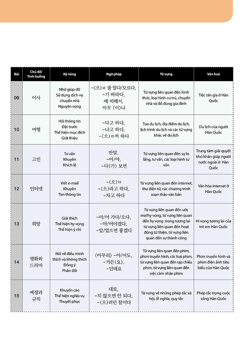 Một công việc ổn định tại công ty lớn với mức lương nghìn đô, cơ hội du học, du lịch tại đất nước Hàn Quốc xinh đẹp, một ngày được gặp Idol KPop, nghe nhạc xem phim Hàn Quốc không cần Vietsub luôn là ước mơ của bao bạn học tiếng Hàn. Tuy nhiên không phải ai sinh ra cũng có năng khiếu học ngoại ngữ và may mắn tìm cho mình được phương pháp học đúng đắn. 2. Những khó khăn người học hay gặp phải Học tiếng Hàn mới đầu cảm thấy khá thoải mái vì bảng chữ cái tiếng Hàn dễ phiên âm sang tiếng Việt. Tuy nhiên khi đi sâu người học lại thường hay mắc phải những khó khăn như: Không biết bắt đầu học từ đâu Không biết học như thế nào thì hiệu quả Không tìm được tài liệu phù hợp Học trước quên sau, không có lộ trình học Học lệch không thể phát triển hết tất cả các kỹ năng,… 3. Phương pháp khắc phục khó khăn Hiểu được những khó khăn mà người học tiếng Hàn thường hay gặp phải và sự dày công nghiên cứu dựa trên những kinh nghiệm giảng dạy đội ngũ sản xuất đã tìm ra phương pháp học tiếng Hàn phù hợp nhất dành cho người Việt học tiếng Hàn Quốc. Đó là bộ giáo trình tiếng Hàn tổng hợp dành cho người Việt Nam. Đây là bộ giáo trình học tiếng Hàn duy nhất trên thị trường có giải thích ngữ pháp bằng tiếng Việt. Do đó thuận tiện cho người học vừa có thể học cả trên lớp và vừa có thể tự học được. Nội dung giáo trình tiếng Hàn tổng hợp Trung cấp 3 Giáo trình tiếng Hàn trung cấp 3 (bản mới) gồm 15 bài tương ứng với 15 chủ đề thông dụng được sắp xếp một cách có hệ thống và liên quan đến nhau. Cấu trúc mỗi bài được chia thành các phần rõ ràng : Từ vựng, cấu trúc ngữ pháp kèm ví dụ chi tiết, luyện nói, nghe, đọc, viết, văn hóa và cuối bài có kèm từ mới xuất hiện trong bài đọc: Mở đầu mỗi bài có phần tóm tắt mục tiêu cho người học về kỹ năng, từ vựng, ngữ pháp, văn hóa…nhằm định hướng người học cần phải học như thế nào để đạt hiệu quả cao nhất. Từ vựng: Đưa ra các từ thông dụng trong cuộc sống hàng ngày tương ứng với chủ đề của bài Ngữ pháp: Mỗi bài học có từ 3 – 4 cấu trúc, giải thích bằng tiếng Việt chi tiết, cụ thể, kèm ví dụ thực tiễn giúp người học hiểu sâu ngữ pháp và luyện tập Luyện nói: Gồm các tình huống thông dụng trong cuộc sống, được chia làm 3 bước cơ bản : Làm quen – luyện tập – nâng cao Luyện nghe: Phần nghe kết hợp giữa nghe và chọn đáp án đúng, được sắp xếp theo trình tự từ dễ đến khó. Luyện đọc: Gồm các bài đọc từ cơ bản đến nâng cao giúp người học rèn luyện kỹ năng đọc và dịch. Luyện viết: Gồm các dạng bài: dịch từ tiếng Việt sang tiếng Hàn, điền từ vào chỗ trống và bài viết nâng cao Phần văn hóa : Giúp người học hiểu hơn về văn hóa truyền thống và hiện đại của Hàn Quốc Cuối mỗi bài sẽ có phần bổ sung từ vựng thường xuất hiện trong vid dụ và bài đọc Nội dung trong mỗi bài trong quyển tiếng hàn trung cấp 3 có các biểu hiện thông dụng trong thực tiễn giúp người học dễ dàng ứng dụng trong cuộc sống hàng ngày. Bố cục rõ ràng, hình ảnh, hình vẽ sinh động, màu sắc hài hòa kích thích sự tiếp thu và giúp việc học trở nên thú vị, không nhàm chán. Học online trên APP MCBooks tiện dụng mọi lúc mọi nơi Dựa trên sự đáp ứng nhu cầu người học và khắc phục hạn chế của giáo trình tổng hợp bản cũ, MCBooks tặng bạn nội dung học Online tiện ích trên app MCBooks khi mua sách Tiếng Hàn tổng hợp bản mới tại website chính thức của công ty.