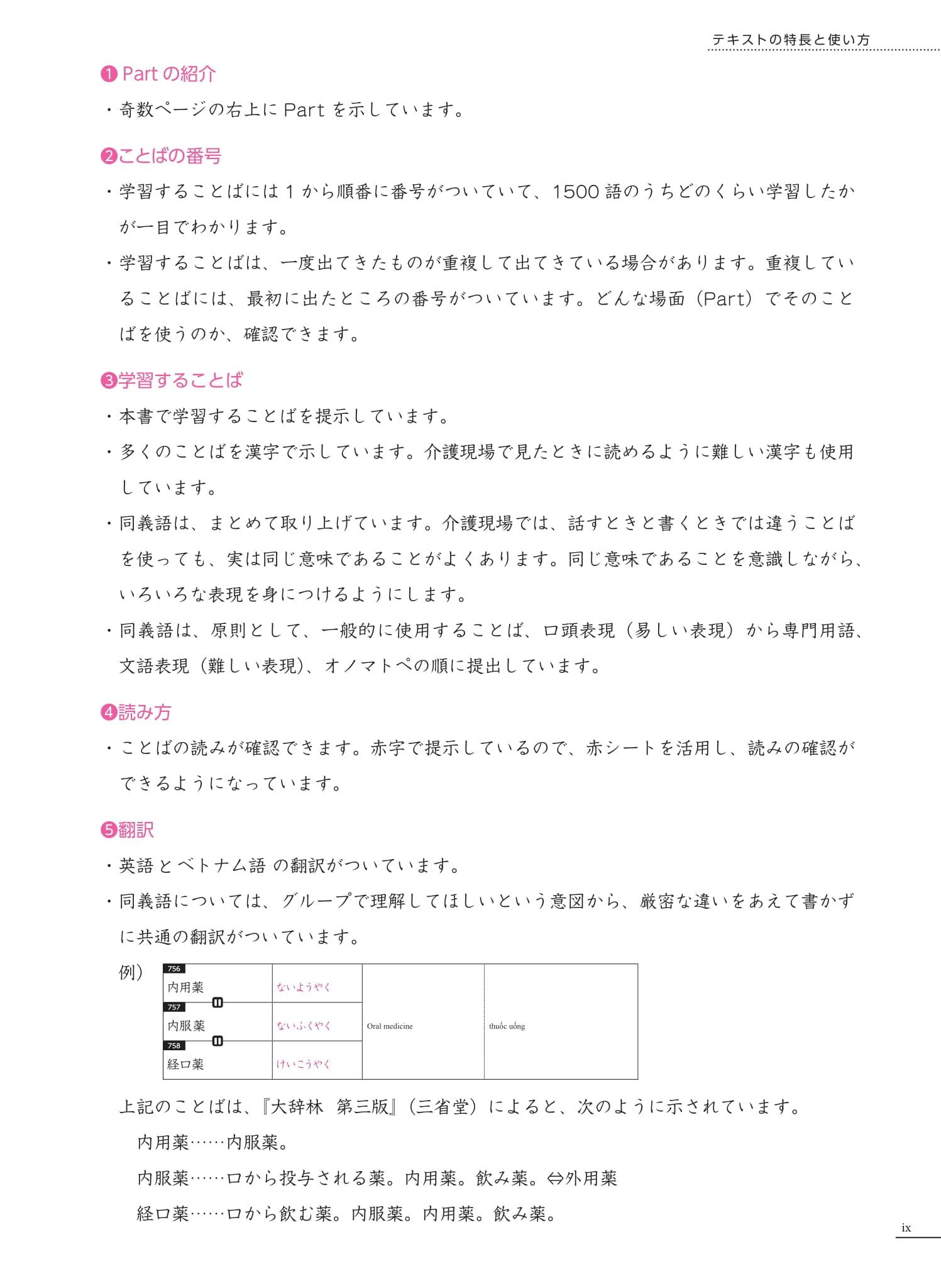 Nằm trong bộ sách Tiếng Nhật chuyên ngành điều dưỡng. Quyển "Từ vựng cơ bản" này là tổng hợp các từ vựng chuyên ngành điều dưỡng, kèm bản dịch Anh Việt và các câu ví dụ bám sát hiện trường làm việc thực tế. Giúp người học có cái nhìn tổng quát về ngành điều dưỡng. Có đính kèm tấm nhựa đỏ phục vụ việc tự học. Đây là giáo trình rất bổ ích cho những người đang học ngành điều dưỡng, hoặc muốn làm việc trong ngành điều dưỡng tại Nhật Bản.
