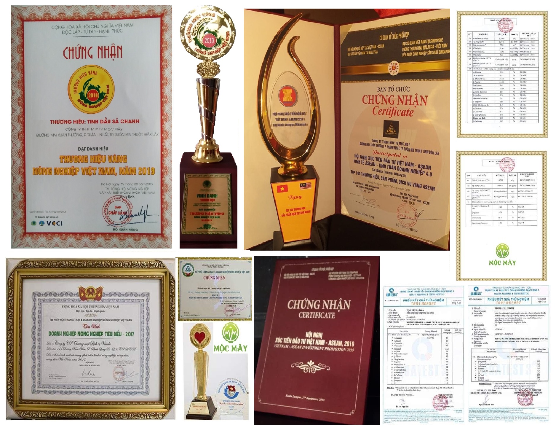 Mộc Mây Farm là xưởng sản xuất tinh dầu có thể nói là lớn nhất Việt Nam hiện nay. Cùng với đội ngũ kĩ sư giàu kinh nghiệm. Nay chúng tôi cho ra đời sản phẩm tinh dầu Hoa Ngũ Sắc nguyên chất 100% đã được kiểm nghiệm từ mẫu đất trồng, nguồn nước tưới theo tiêu chuẩn Organic, bón phân hữu cơ, ko sử dụng hóa chất, kích thích tăng trưởng. Lò chưng cất hiện đại dùng điện 3pha, được chế tạo bằng inox cao cấp dùng trong y dược để tránh ra ten làm tinh dầu bị nhiễm kim loại nặng, mất đi tinh chất, mùi hương vốn có của tinh dầu trong quá trình chưng cất, tất cả đều đạt tiêu chuẩn xuất khẩu của trung tâm giám định Vinacontrol, Quatest3, Bộ y tế…và được tôn vinh trong lễ trao giải doanh nghiệp nông nghiệp tiêu biểu 2017, top 100 thương hiệu vàng nông nghiệp VN 2019, Top 10 thương hiệu mạnh đất Việt 2020 và một số giải thưởng khác... Hiện tại chúng tôi đang bán sỉ cho hầu hết các đại lý lớn nhỏ và nhiều Cty dược, mỹ phẩm trong và ngoài nước