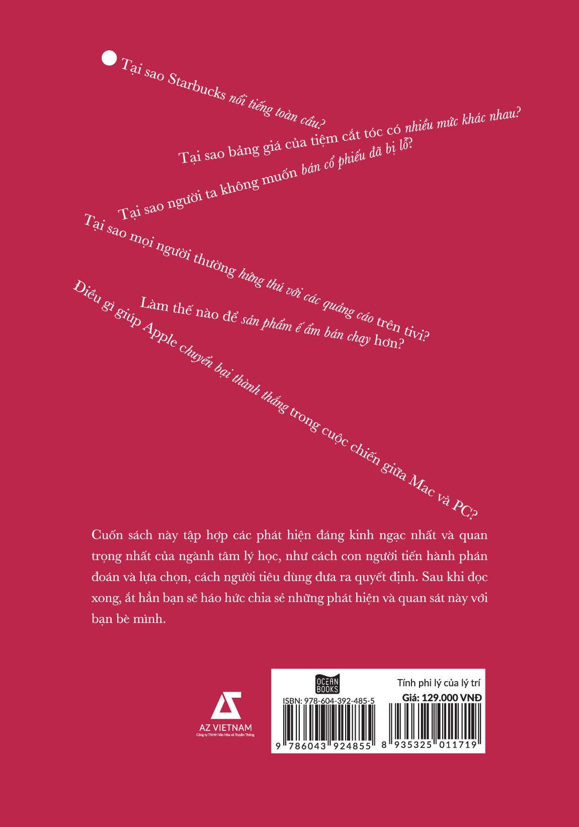 GIAO NGAY KHI CÓ HÀNG TẠI NHANVAN.VN TRONG THÁNG 4 - 2023 ==========================================Thông tin chi tiếtMã hàng: 8935325011719Tên Nhà Cung Cấp: AZ Việt NamTác giả: Trịnh Dục Hoàng, Tô ĐanNgười Dịch: Phương LinhNXB: Thế GiớiNăm XB: 2023Ngôn Ngữ: Tiếng ViệtTrọng lượng (gr): 300Kích Thước Bao Bì: 20.5 x 14.5 x 1 cmSố trang: 272Hình thức: Bìa Mềm========================================================Tính Phi Lý Của Lý TríTÍNH PHI LÝ CỦA LÝ TRÍ – LÝ THUYẾT VỀ CÁC HÀNH VI KỲ LẠCon người là đối tượng khó hiểu nhất trên đời, mỗi cá nhân đều là một câu đố. Dù chúng ta có bỏ thời gian, công sức tiếp cận, tìm hiểu và khám phá thế giới nội tâm của người khác nhưng những điều họ làm vẫn thường nằm ngoài dự đoán của chúng ta. Thế nhưng, cuốn sách này sẽ cho bạn biết, dù hiểu một người khó khăn đến mấy, dù người đó trông khác biệt ra sao, hành vi của con người đều do một số quy luật chung dẫn dắt. Điều này giúp chúng ta có manh mối để dự đoán và thấu hiểu hành vi của người khác. Những phát hiện này mở rộng tầm nhìn của chúng ta, cũng khiến chúng ta thi thoảng có thể nhìn thấy bóng dáng mình ở người khác.Một mục đích khác của cuốn sách là muốn cho độc giả thấy sự vi diệu trong tình cảm và tính phức tạp trong tính cách con người. Con người vốn không thể lý trí đưa ra mọi quyết định như họ vẫn tưởng. Động lực nguồn của cuộc sống xuất phát từ ham muốn, kích động, yêu ghét, buồn vui, từ sự thay đổi tâm trạng cảm xúc nằm dưới vẻ bình tĩnh của con người, cũng từ nhược điểm, khuyết điểm ẩn trong mỗi người. Ngoài lý trí, chính những tình cảm và cảm giác phi lý trí mà chúng ta không nhìn thấy này đang điều khiển hành vi của chúng ta.Các câu hỏi mà kinh tế học lý trí truyền thống không thể trả lời đều có được lời giải đáp hoàn hảo trong hành vi học phi lý trí. Khi chúng ta vận dụng phương pháp khoa học để bình tĩnh phân tích, giải mã chúng, những cảm xúc và cảm giác này sẽ dẫn dắt chúng ta vén màn bí mật nằm sâu trong nhân tính, giúp chúng ta có được một loại trí tuệ ngoài lý trí. Sau khi đọc cuốn sách này, tin rằng bạn sẽ có một đôi mắt sáng hơn, một loại trí tuệ hoàn chỉnh vừa lý trí vừa phi lý trí.