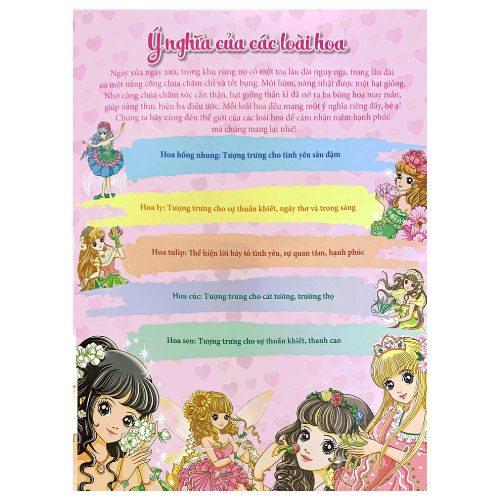 Mỗi một loài hoa đều mang một ý nghĩa riêng đấy bé ạ! Tiên nữ các loài hoa cũng vô cùng xinh đẹp. Chúng ta hãy cùng ngắm nhìn và tìm hiểu ý nghĩa của các loài hoa mà các nàng đại diện nào! Các bé nhớ tô màu để các tiên nữ thêm rạng rỡ nhé!