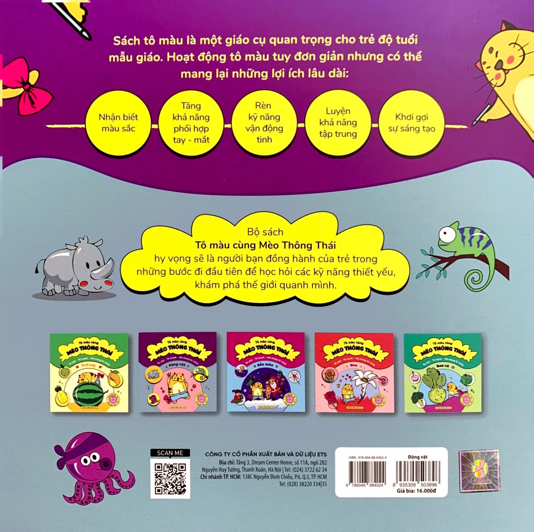 Tô Màu Cùng Mèo Thông Thái - Song Ngữ Việt-Anh - Động Vật (Dành Cho Trẻ Từ 3-5 Tuổi)