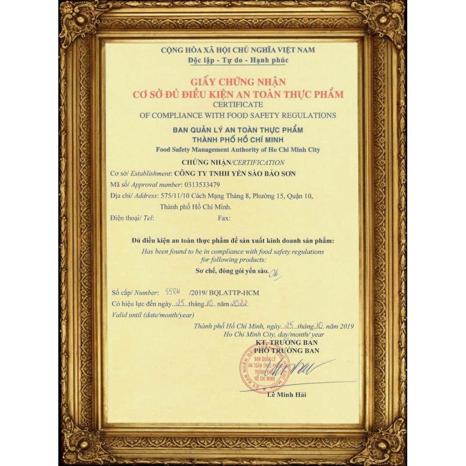 Với sản phẩm tươi sống, trọng lượng thực tế có thể chênh lệch khoảng 10%. BẢO SƠN TRUE NEST - NHẤT PHẨM BÁT TRÂN Sản phẩm: Yến Chưng Saffron (Nhụy hoa nghệ tây). - ĐẶC
