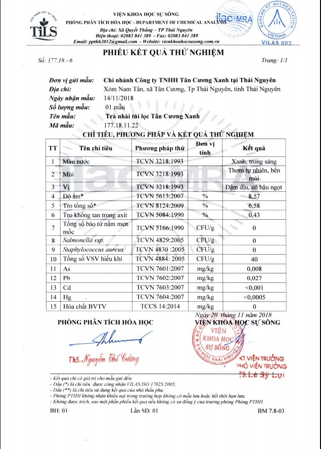 - Trà được đóng gói nhỏ tiện lợi 2 gram/gói đựng trong túi thiếc rất tiện sử dụng văn phòng hoặc đi công tác. Khách hàng chia sẻ cảm nhận: Đài truyền hình nói về chúng tôi: Báo chí viết về chúng tôi: THÔNG TIN NHÀ CUNG CẤP: Tân Cương Xanh là hãng sản xuất trà Việt Nam Thượng Hạng có uy tín và được biết đến bởi đông đảo người tiêu dùng. Công ty đã đầu tư đồng bộ từ vùng nguyên liệu rộng 50 ha ở Tân Cương (Thái Nguyên) đạt tiêu chuẩn VietGap, Nhà máy rộng 2,000 m2 với máy móc hiện đại nhập từ Đài Loan và hệ thống quản lý chất lượng ISO 9000 - 2009, bên cạnh đó công ty đã xây dựng mạng lưới chuỗi cửa hàng trưng bày&giới thiệu sản phẩm ở Hà Nội (10 cửa hàng), TP.HCM (03 cửa hàng), Đà Nẵng (02 cửa hàng) và Thái Nguyên (02 cửa hàng) và hệ thống đại lý phủ khắp 63 tỉnh thành trong cả nước. Các sản phẩm trà túi lọc mang nhãn hiệu Tân Cương Xanh được lựa chọn chính thức trên các chuyến bay của Hãng hàng không Quốc gia VN Airline. Công ty cũng tích cực tham gia các hội chợ triển lãm như Tôn Vinh Hàng Việt, Hội Chợ VietFood, với mong muốn quảng bá rộng rãi đặc sản nổi tiếng của Việt Nam được biết đến không chỉ trong nước mà còn trên thị trường quốc tế. Các sản phẩm mang nhãn hiệu Tân Cương Xanh đã có mặt tại các thị trường khó tính như Anh, Hoa Kỳ, Nhật Bản, Đông Âu và được đóng nhận nồng nhiệt.