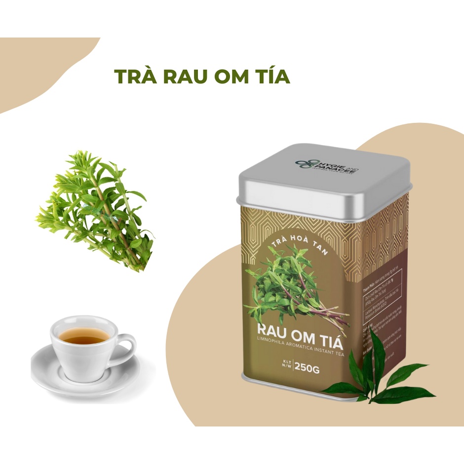 - TRÀ HOÀ TAN RAU OM TÍA có thành phần chính là dịch chiết xuất cô đặc của rau om tía, chế biến thành dạng trà hòa tan, rất tiện dụng, thơm ngon và dễ uống.