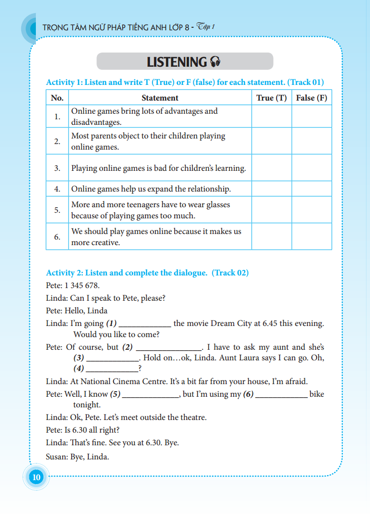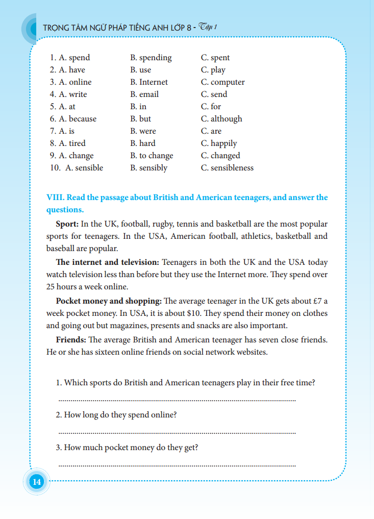 Trọng tâm ngữ pháp Tiếng Anh 8 tập 1 : unit 1 – unit 6