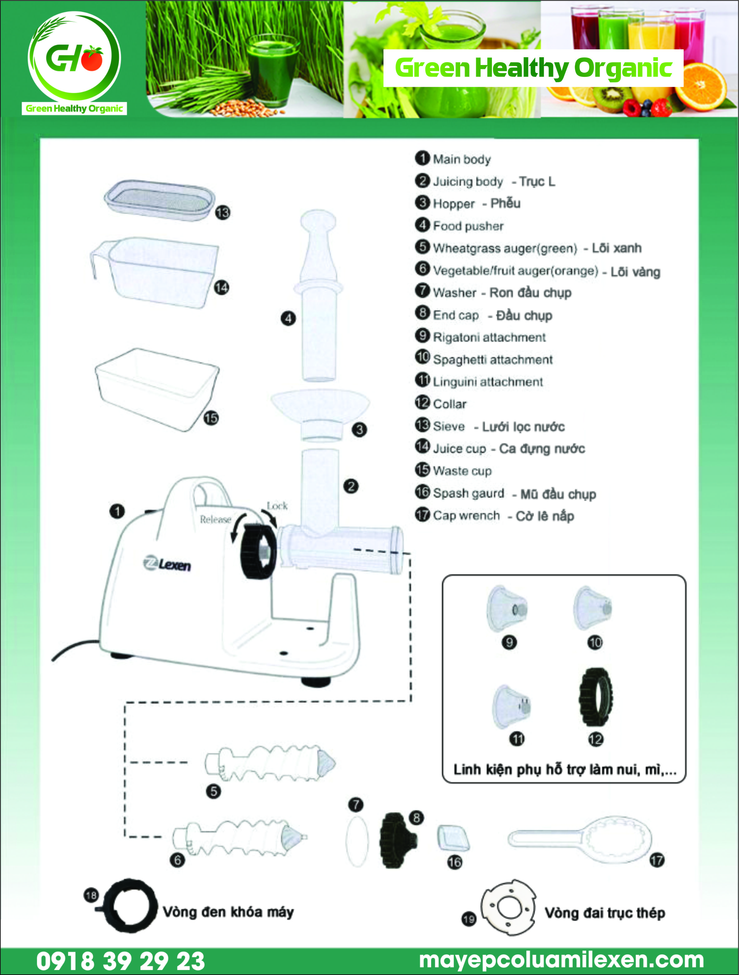 PHỤ KIỆN MÁY ÉP CHẬM LEXEN, HIẾM KHI HƯ HỎNG NHƯNG HÃNG VẪN LUÔN CÓ SẴN ĐỂ PHỤC VỤ KHÁCH HÀNG.