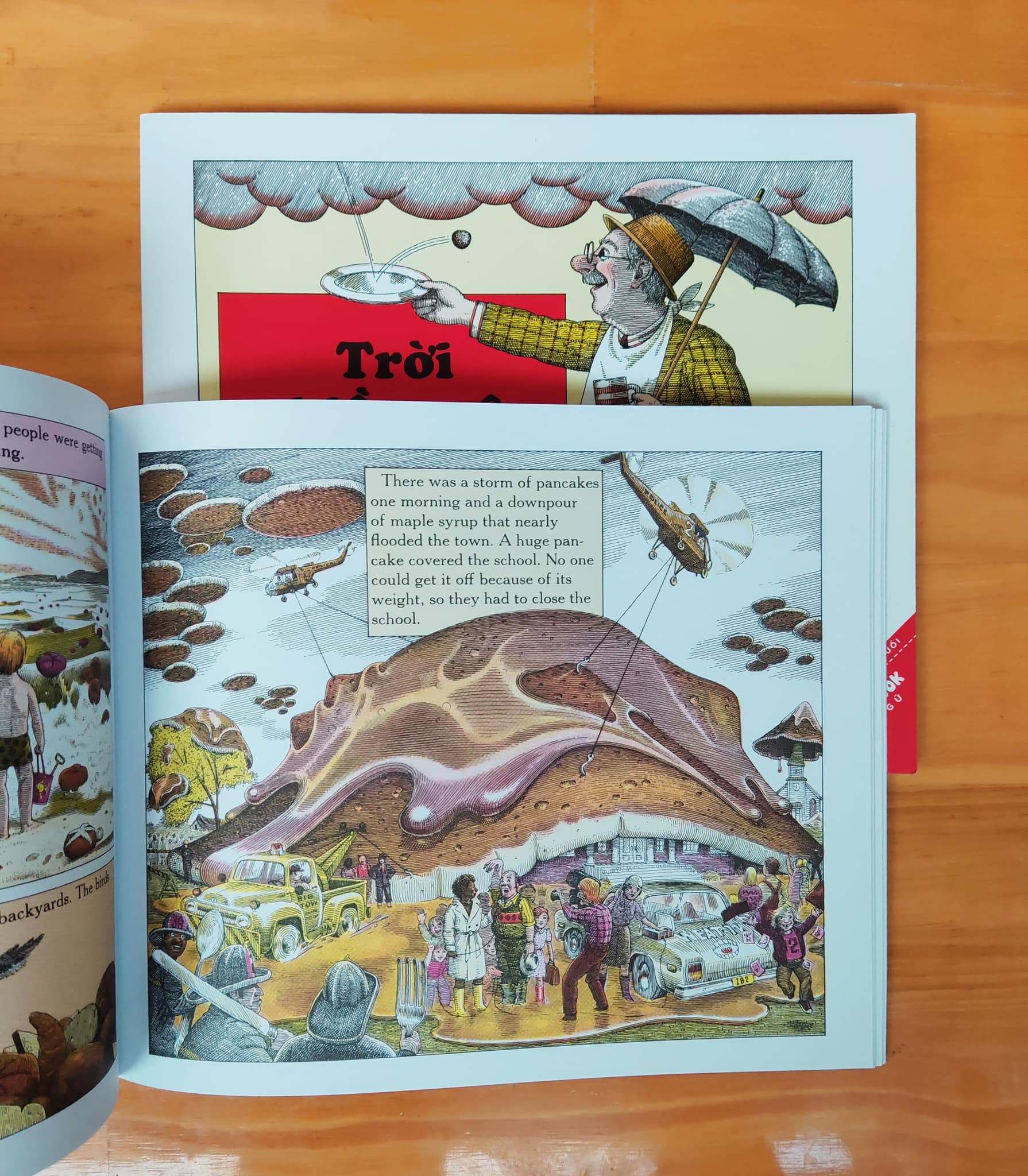 Liệu cuộc sống ở thị trấn “Nhai và Nuốt” có tiếp tục êm đềm như thế hay không? Điều bất ngờ gì đang chờ đón người dân ở thị trấn này? Các bé hãy cùng khám phá trong cuốn sách “Trời nhiều mây và có thể có thịt viên” nhé.