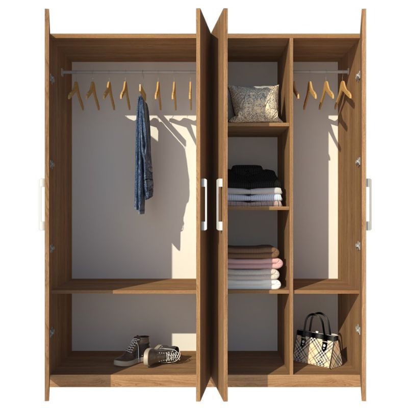 Tủ quần áo gỗ công nghiệp 4 cánh cửa mở Ohaha - TQA043 cung cấp không gian lưu trữ rộng rãi, ô ngăn sắp xếp khoa học giúp cho người dùng thoải mái cất trữ đồ đạc, quần áo gọn gàng.