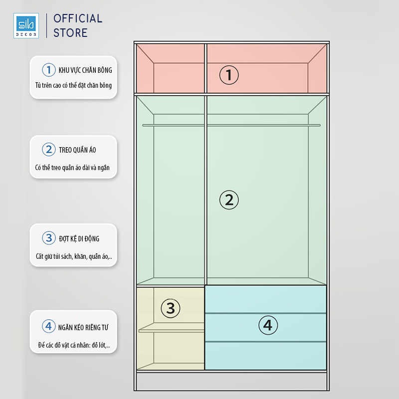 Tủ quần áo là món đồ nội thất thiết yếu trong phòng ngủ khi nó sẽ mang đến một không gian sinh hoạt tiện nghi cho con khi ở riêng. Tủ quần áo của HUCHU