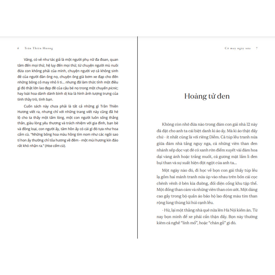 Để rồi lúc nào đó giữa đời sống đô thị ồn ào tất bật và cả thói bon chen, ích kỉ, ta bỗng gặp một HOÀNG TỬ ĐEN của Trần Thiên Hương, gặp NGÀY XƯA của chị, dù có hết sức tình cờ, vẫn thấy nhiều điều ân nghĩa, thủy chung tốt đẹp ở cõi đời.” - Nhà thơ Trần Nhật Thu