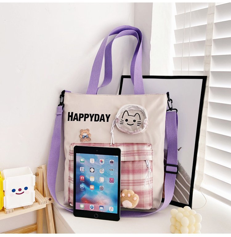 Tên sản phẩm: Túi đeo chéo BH Kids, họa tiết Caro HAPPY DAY, vải Canvas, in hình mèo con xinh xắn - CH127