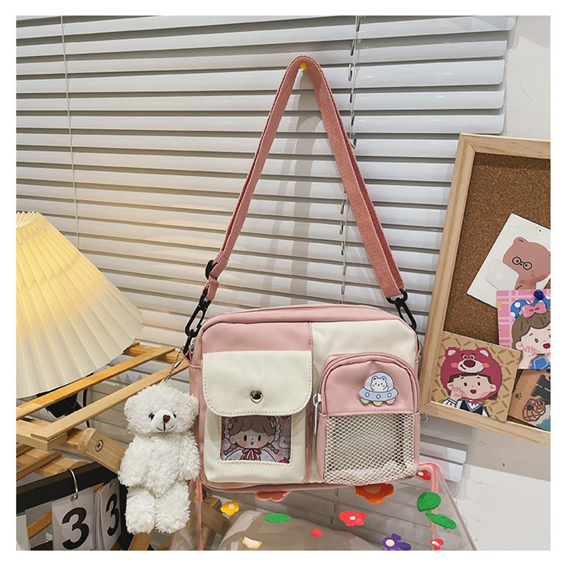 Chiếc Túi đeo chéo đi chơi, túi đeo vai nữ messenger kèm huy hiệu hoạt hình dễ thương với thiết kế dáng messenger nhiều ngăn cùng chi tiết trang trí huy hiệu hoạt hình bắt mắt cài mặt trước túi tạo nên một phong cách dễ thương lại rất thời trang, ắt hẳn sẽ khiến cho các bạn nữ hay các bạn nhỏ siêu lòng ngay từ ánh nhìn đầu tiên.