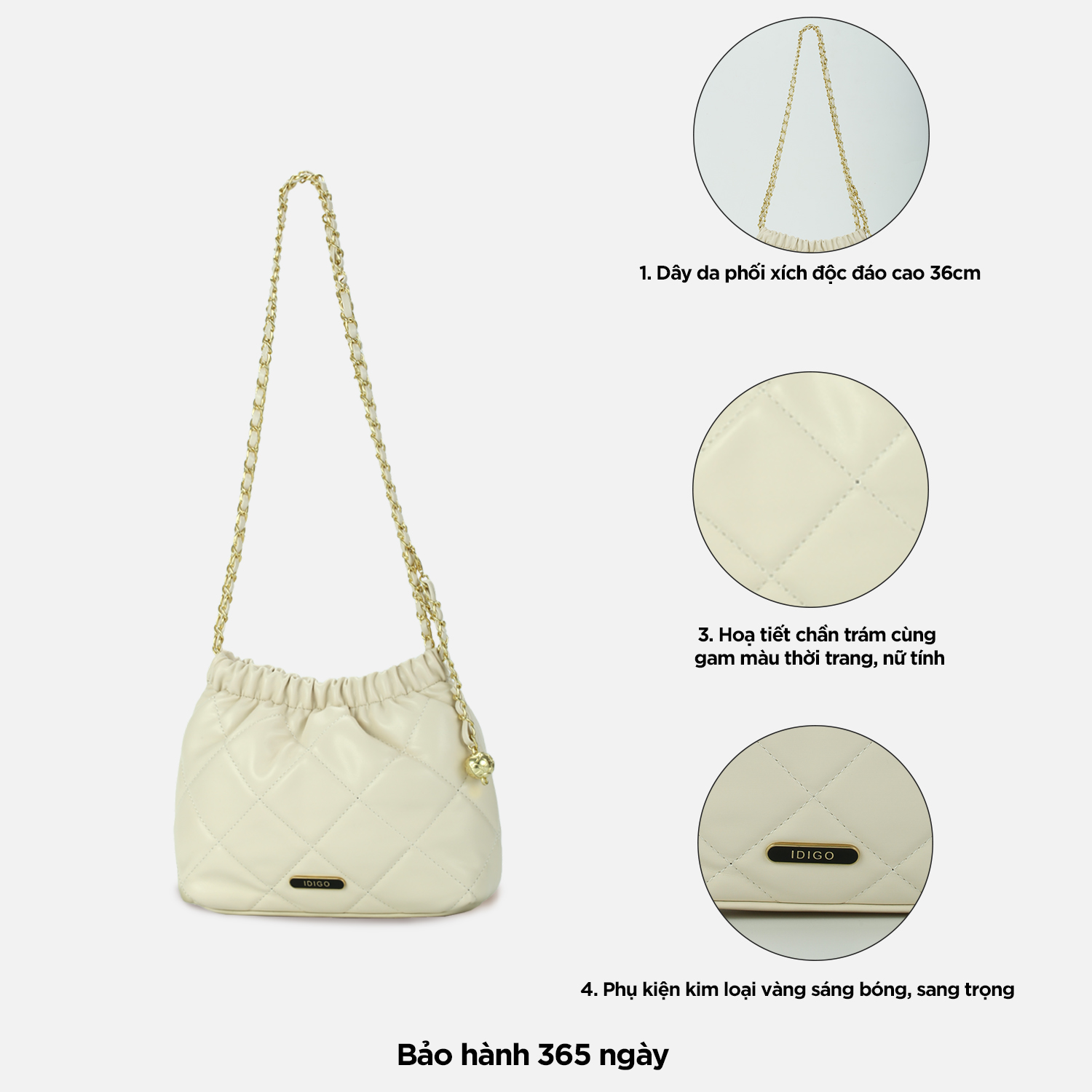 Túi đeo vai đi chơi nữ phom mềm chần trám phối dây xích IDIGO FB2 - 3394